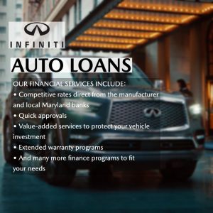 • The INFINITI of Suitland loan process can help you find the best interest rate for your next vehicle purchase.