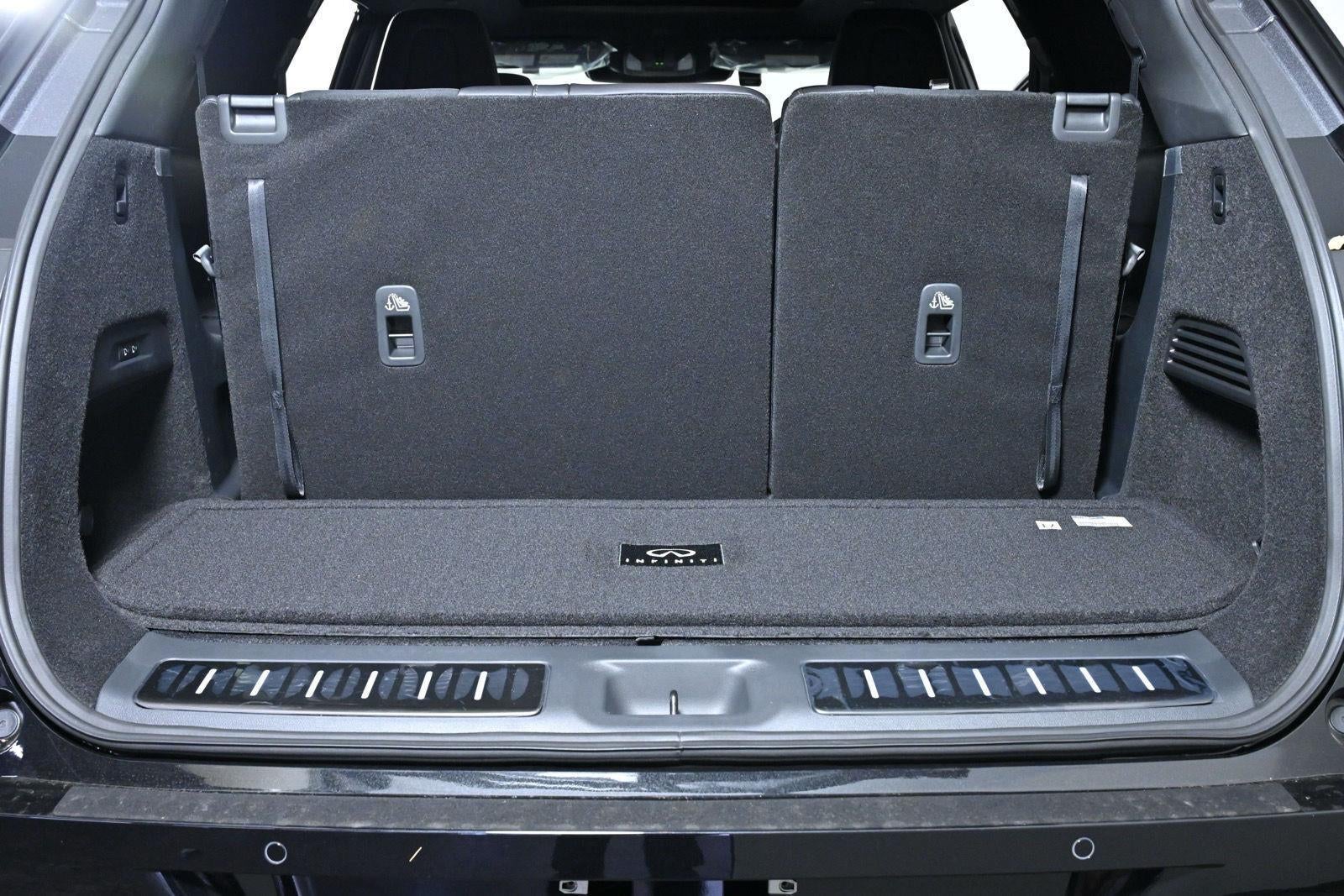 MINERAL BLACK/GRAPHITE SHADOW, GRAPHITE, SEMI ANILINE LEATHER-APPOINTED SEATING SURFACES, [C03] 50 STATE EMISSIONS, [B10] SPLASH GUARDS, [E08] 2-TONE PREMIUM PAINT, [M93] DARK CARGO PACKAGE, [N96] INFINITI RADIANT DARK ILLUM CARGO SCUFF PLATES, [K12] DARK ILLUMINATED KICK PLATES, [L12] CARPETED FLOOR MATS W/CAPTAINS CHAIRS ON 3RD ROW TRAY, [B94] BLACK ROOF RAIL CROSSBARS, [S92] DASH CAM, [S55] LITERATURE KIT
