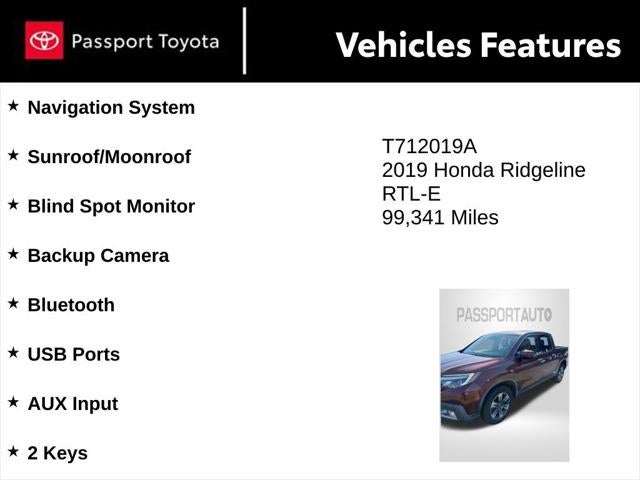 Imagine the possibilities with this exceptional 2019 Honda Ridgeline RTL-E. Boasting a stunning Red exterior and a well-equipped interior, this truck is the perfect blend of style, capability, and technology. Whether you're hauling gear, towing a trailer, or simply enjoying the open road, this Ridgeline is ready to take you there.