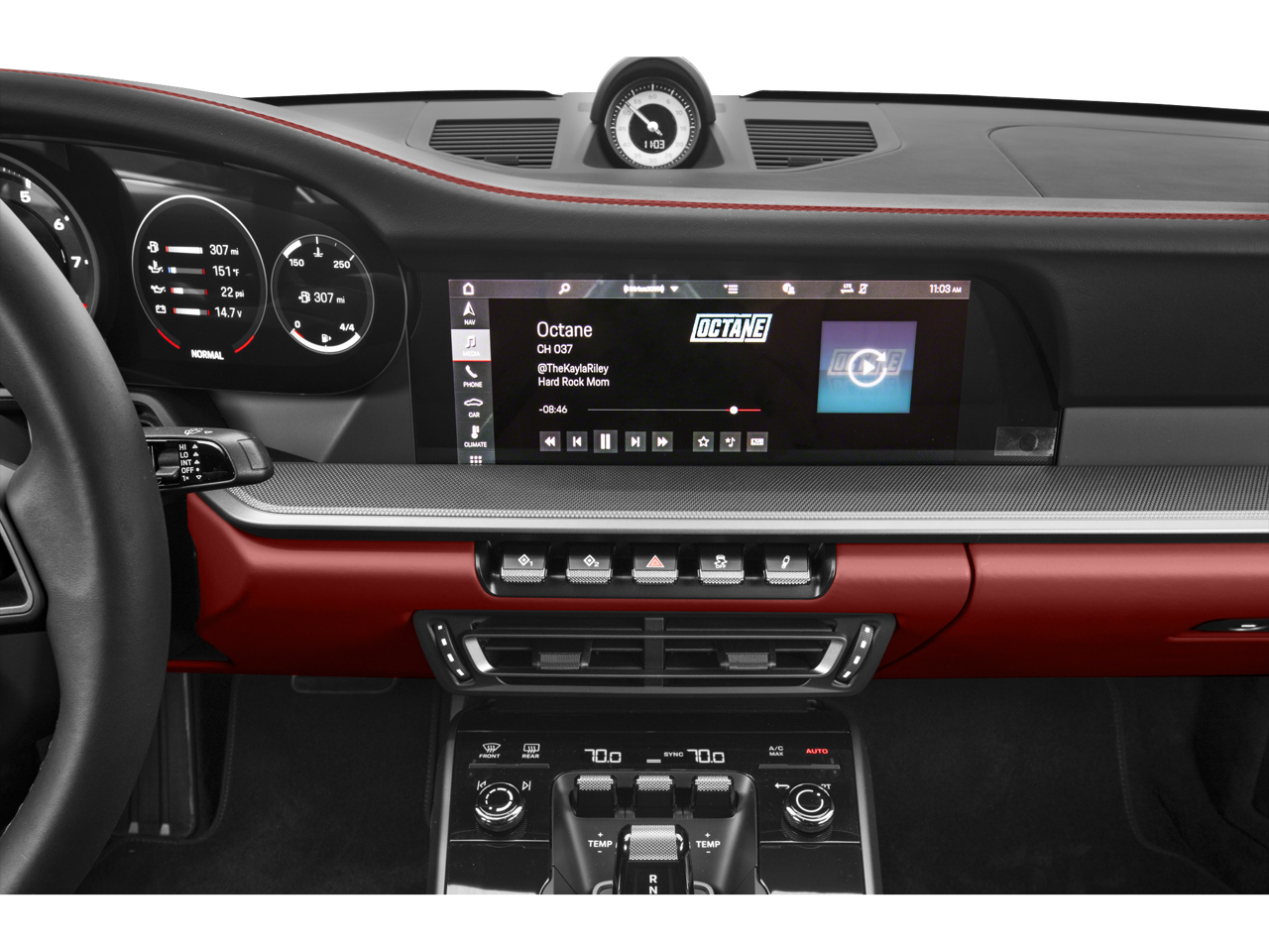 - Radio: Porsche Communication Management (PCM) -inc: Porsche Connect Plus (online navigation, FM radio, wireless Apple CarPlay, SiriusXM, 4G/LTE telephone module and wireless internet access), Porsche Car Connect (car finder, remote vehicle status, remote services and Porsche Vehicle Tracking System (PVTS)), sound package plus, analog sound system, 8 loudspeakers, 150-watt total output w/integral amplifier, digital signal processing and voice control, Subscription required for Porsche Car Connect