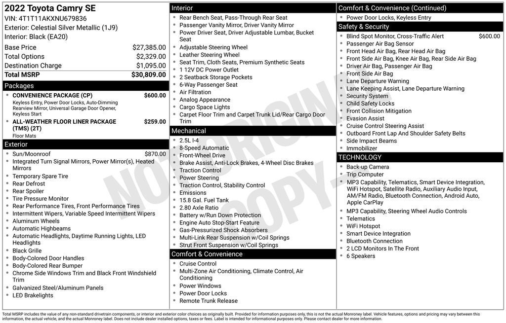 - Vehicle Name: Toyota Camry