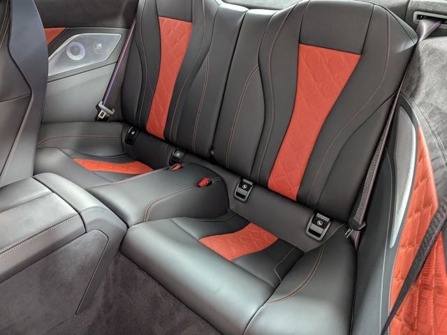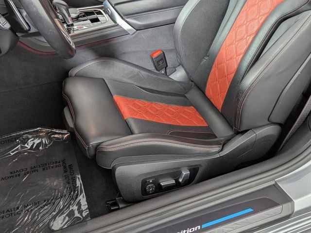 Meticulously crafted with the finest materials, the M8 Competition's interior is a masterpiece of design and craftsmanship. The Black with Sakhir Orange, Full Leather Merino/Alcantara upholstery exudes a bold, sporty elegance, while the heated and ventilated front seats ensure maximum comfort, even on the longest drives.