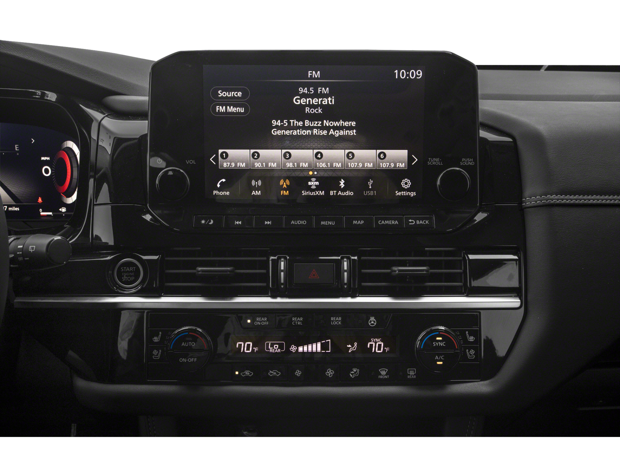 - Radio: AM/FM Audio System -inc: wireless Apple CarPlay, Android Auto, 9" color display w/multi-touch control, SiriusXM satellite radio w/advanced audio features, 2 illuminated front USB connection ports (1 type A, 1 type C) for iPod interface and other compatible devices, Bluetooth® hands-free phone system, streaming audio via Bluetooth®, hands-free text messaging assistant and Siri Eyes-Free/Google Assistant voice recognition