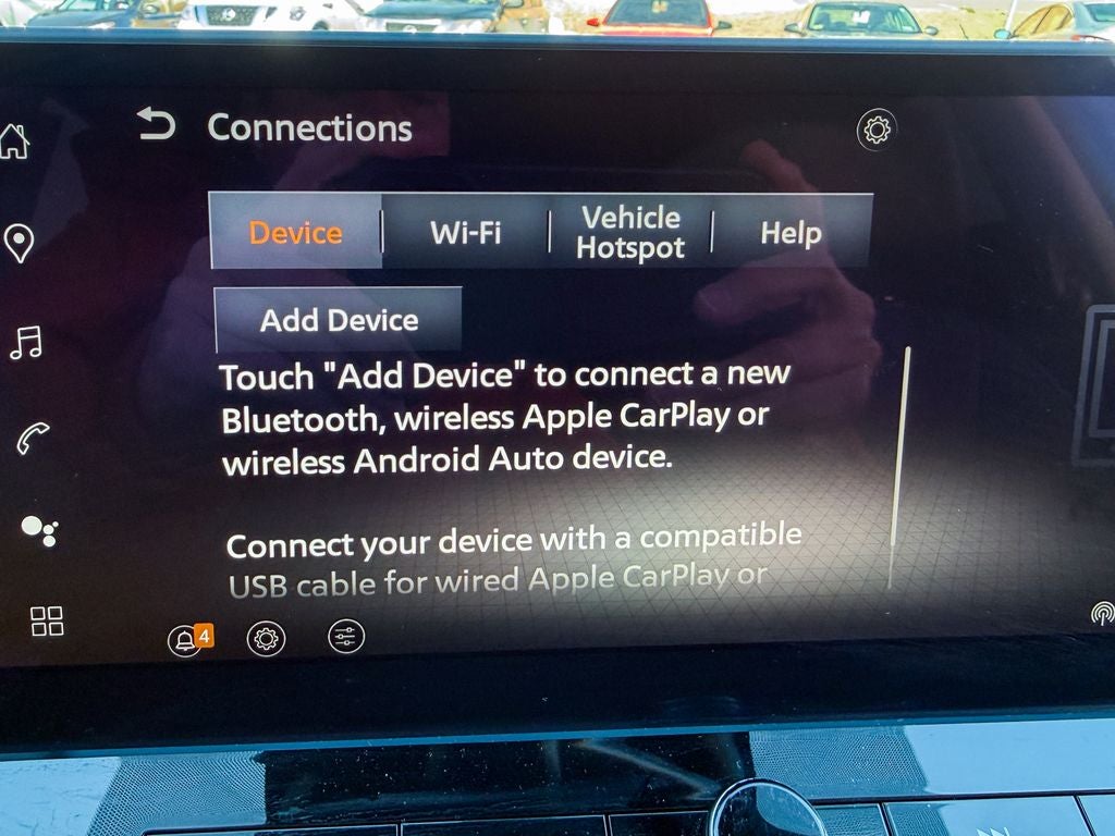 - Radio: AM/FM NissanConnect w/Navigation -inc: 6 speakers plus 2 tweeters, hybrid radio, wireless Apple CarPlay, wireless Android Auto, 12.3" color HD display, Bluetooth®, 2 front USB type-C, Wi-Fi hotspot, Alexa Built-In, Google Built-In, NissanConnect Services powered by SiriusXM, SiriusXM Traffic and SiriusXM Travel Link
