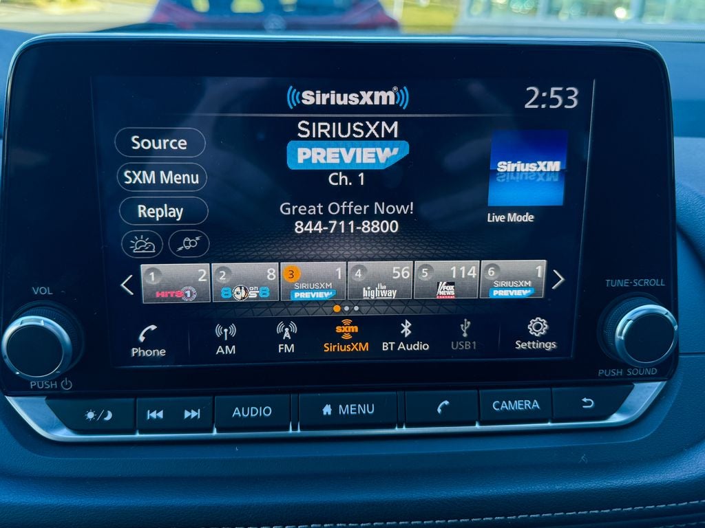 - Radio: AM/FM NissanConnect -inc: 6 speakers plus 2 tweeters, Apple CarPlay, Android Auto, 8" color touch screen display, Bluetooth®, 2 front USB type-C, Wi-Fi hotspot and NissanConnect Services powered by SiriusXM