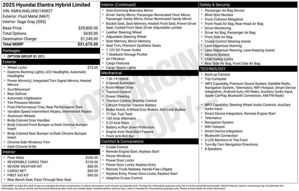 - Vehicle Name: Hyundai Elantra Hybrid