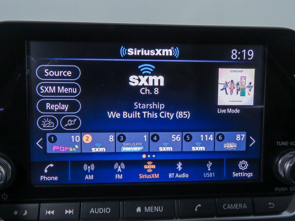 - Radio: AM/FM Audio System -inc: RDS, MP3 and aux-in, 6 speakers, NissanConnect 8" color display w/multi-touch control, Bluetooth® hands-free phone system, streaming audio via Bluetooth®, hands-free text messaging assistant, 2 front illuminated USB ports (1 type-A and 1 type-C) for compatible devices, Apple CarPlay, Android Auto, SiriusXM Radio, Siri Eyes Free and Google Assistant voice recognition