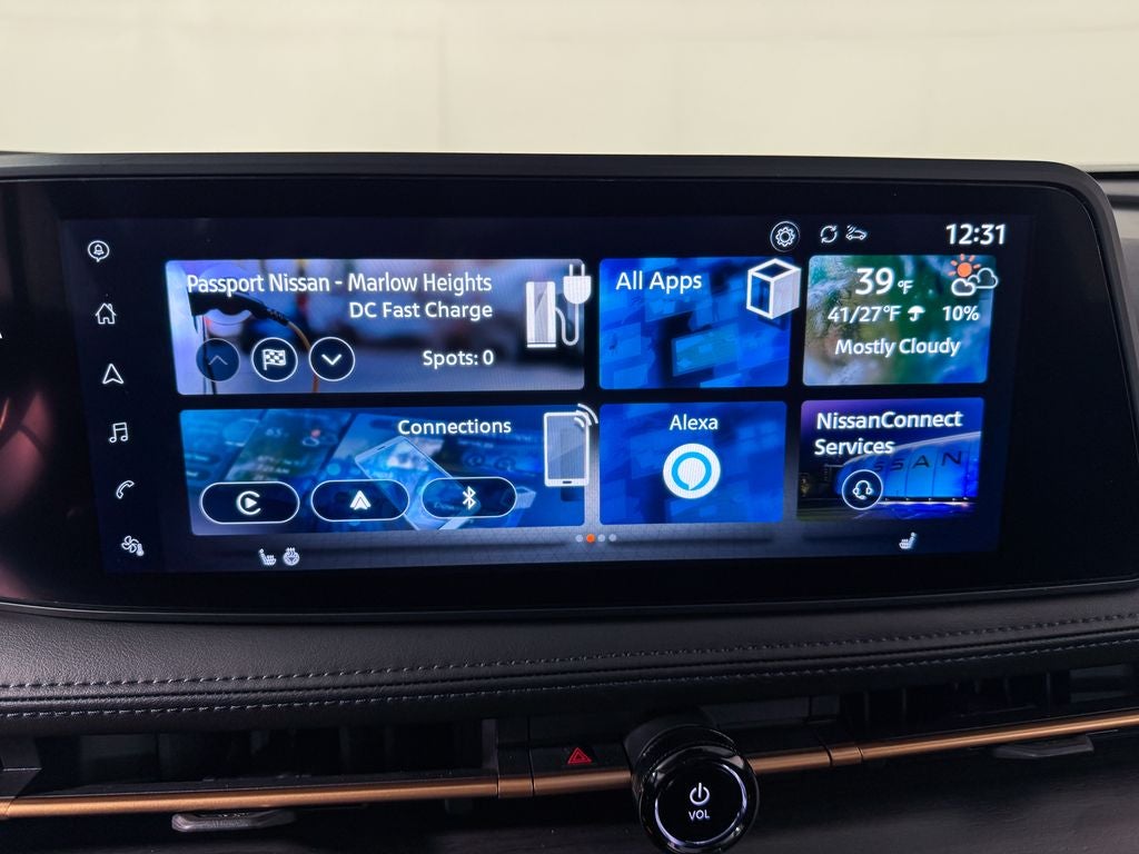 - Radio: NissanConnect EV w/Navigation -inc: AM/FM audio system, 6 speakers, 12.3" color display w/multi-touch control, wireless Apple CarPlay, wired Android Auto, NissanConnect Services, Bluetooth® hands-free phone system, SiriusXM satellite radio w/advanced audio features, SiriusXM Traffic and SiriusXM Travel Link